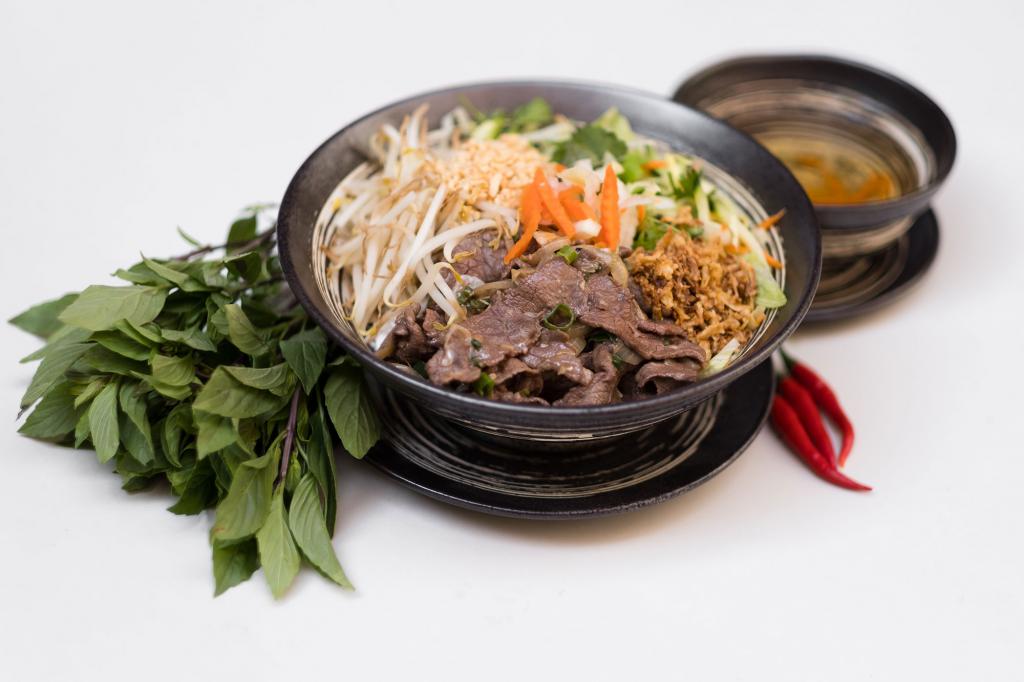 Tento pokrm pochází z jihu Vietnamu. Jídlo se skládá z vařených kulatých rýžových nudlí bún s restovaným hovězím masem, zeleninou a bylinkami přelitými zálivkou.